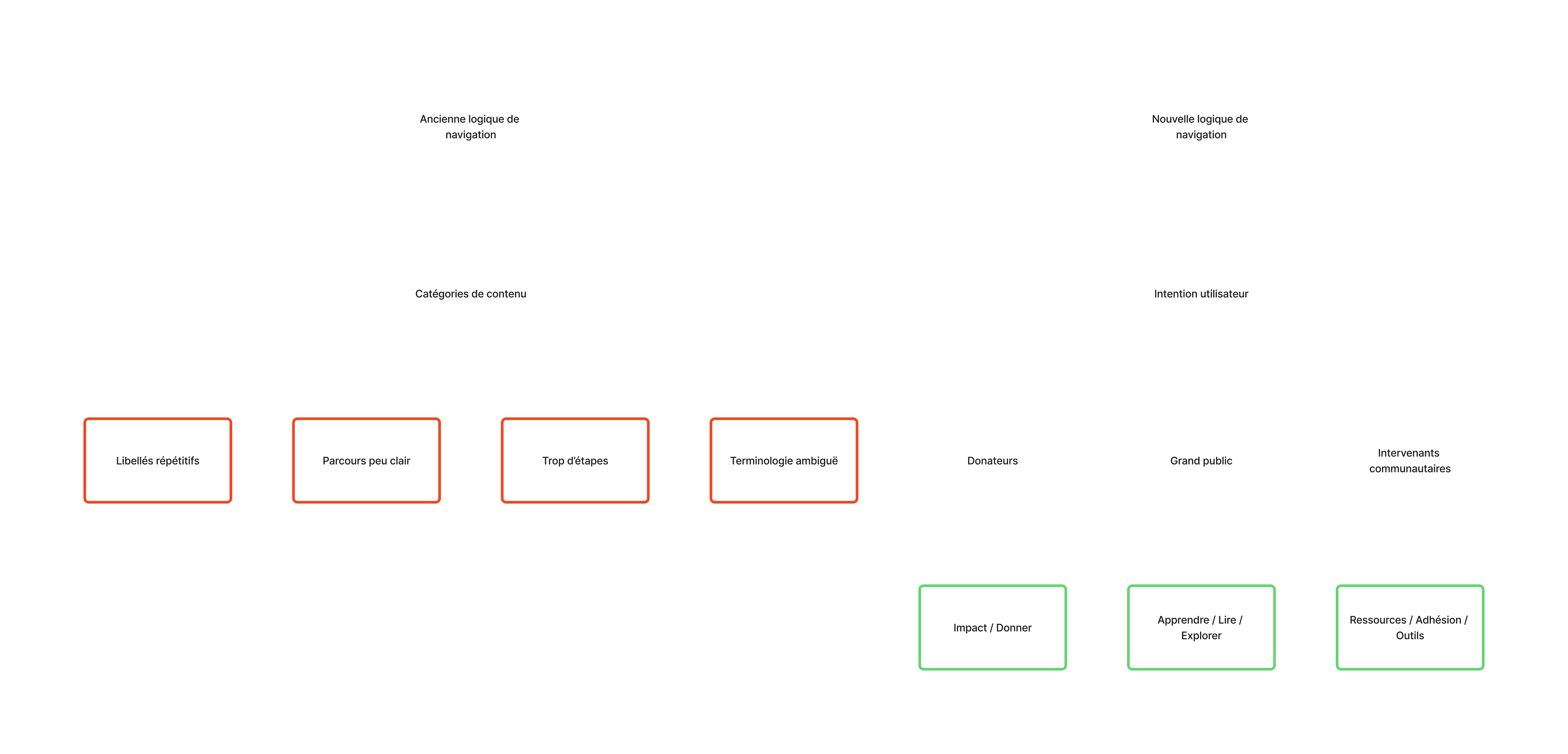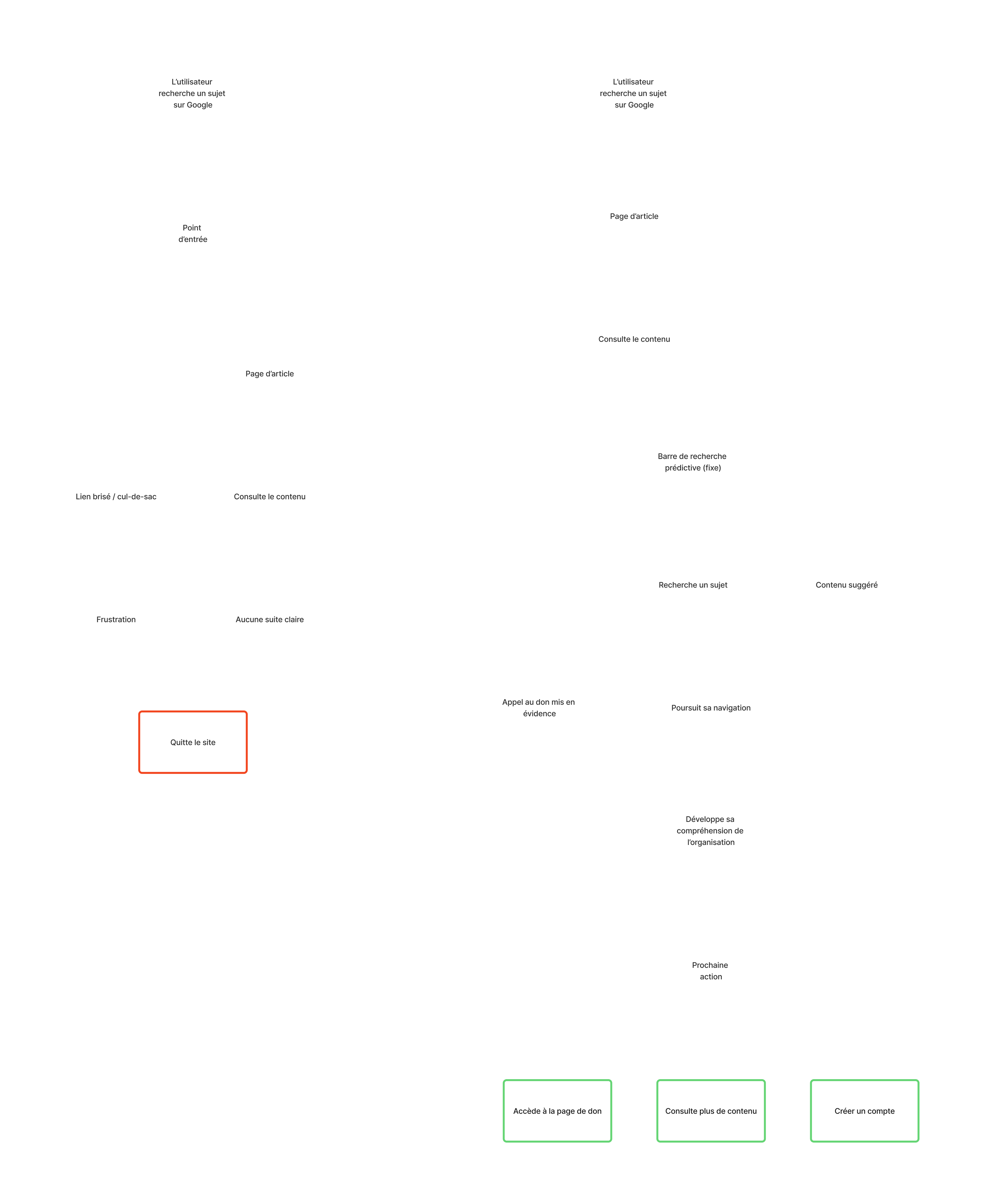 Bien que le grand public représentait la majorité du trafic, ce segment était initialement perçu comme secondaire. À travers la création de personas et de parcours utilisateurs, nous avons démontré qu’il pouvait devenir un point d’entrée stratégique — permettant de générer de la notoriété, bâtir la confiance et ultimement contribuer aux dons.